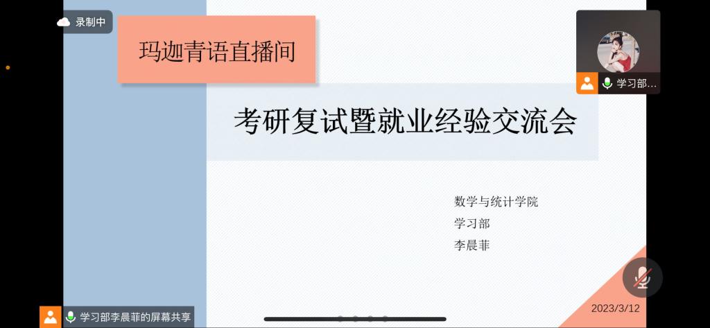 本站讯 在大四学生面临考研复试和就业难题的关键时期,365英国上市网站官网于3月12日晚成功举办“玛珈青语直播间之考研复试暨就业经验交流会”,帮助毕业生积极备考、吸收经验。本次经验交流会共邀请了四位在考研或就业方面获得成就的校友进行进行经验交流与分享,近百名同学通过线上直播的方式参与会议。
