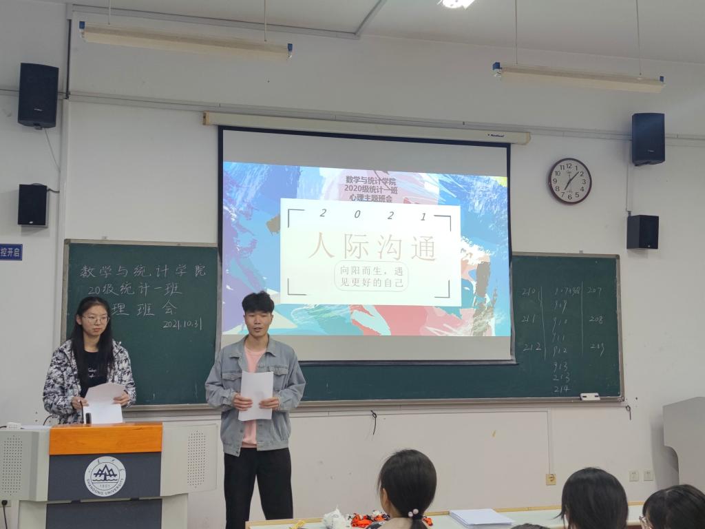 本站讯 10月31日晚,365英国上市网站官网2020级统计一班于商学院548举行“人际沟通——与心灵对话”心理班会。本次班会由心理委员孙善玺、陈荟如主持,2020级统计一班全体同学参加。